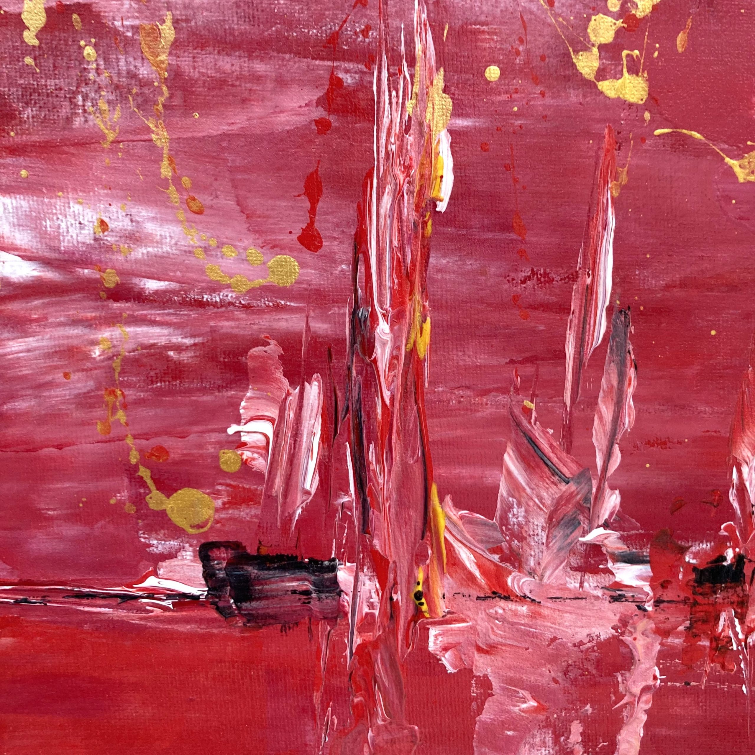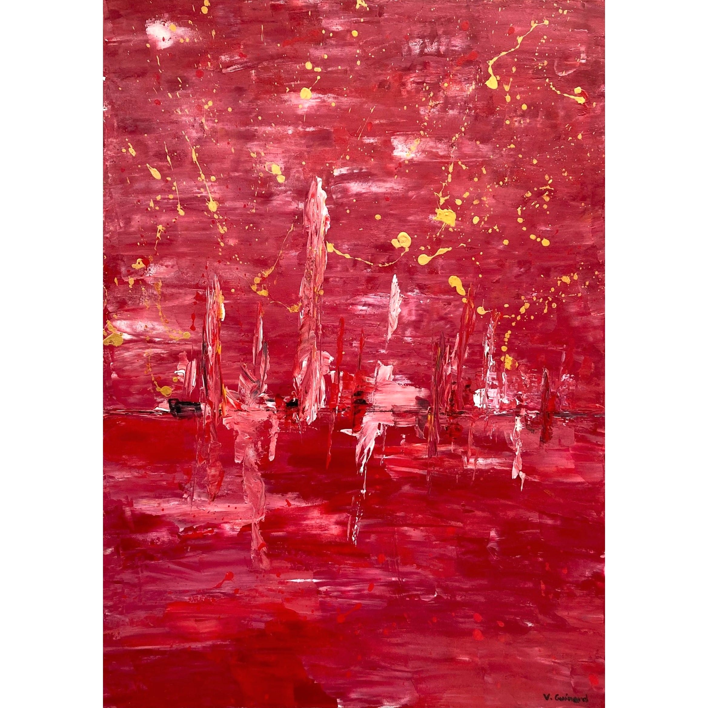 Une ligne se dessine et c’est tout un horizon qui apparait. Le couteau fait le reste par mouvements vifs et incisifs créant ainsi une illusion de reflet… ou pas